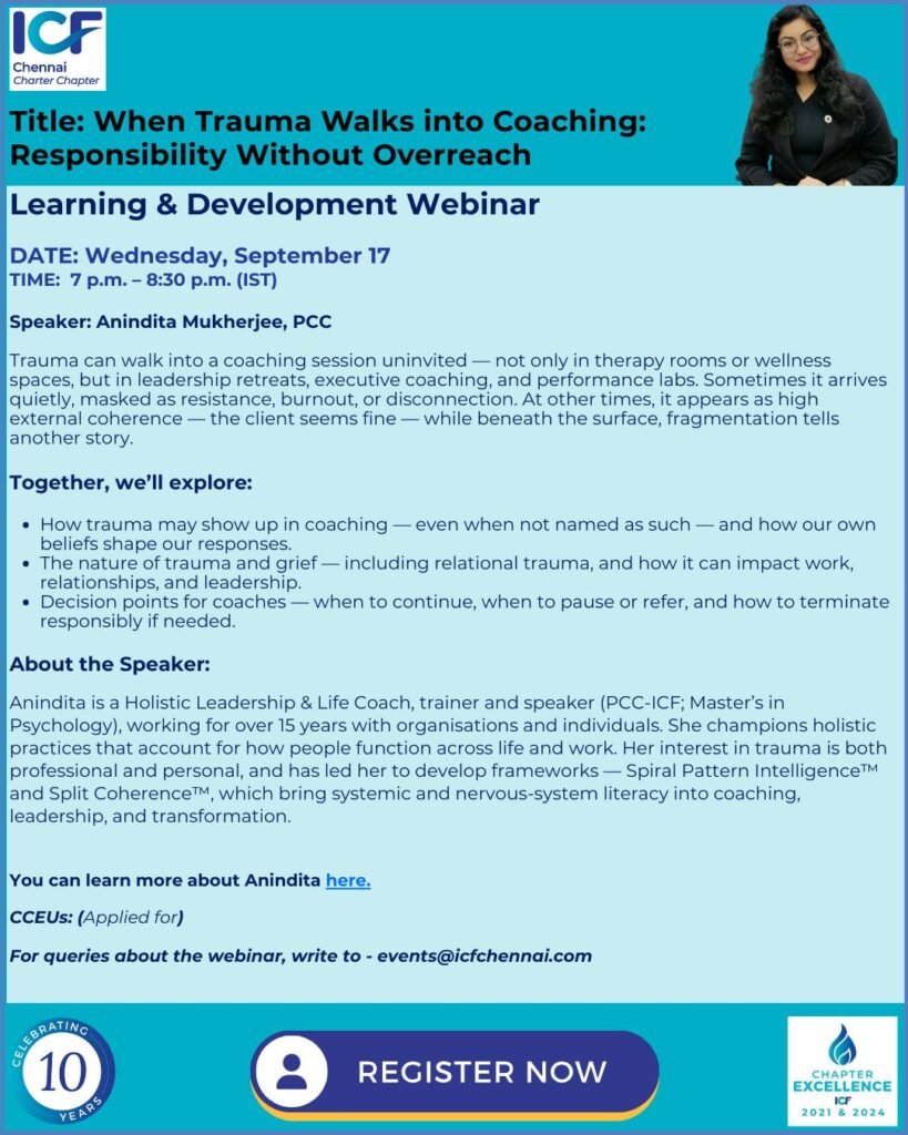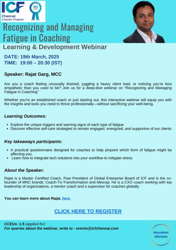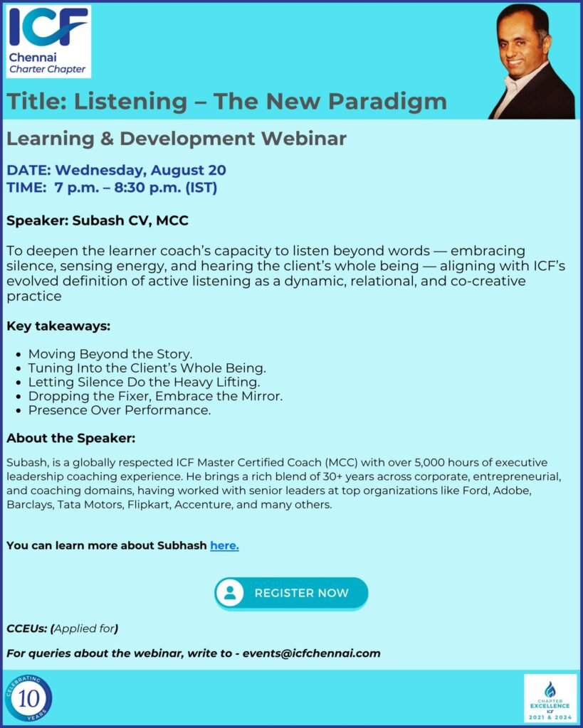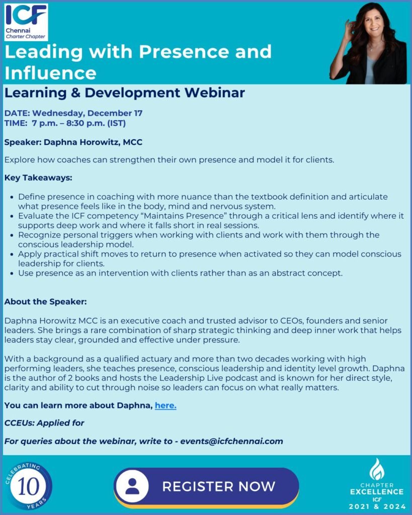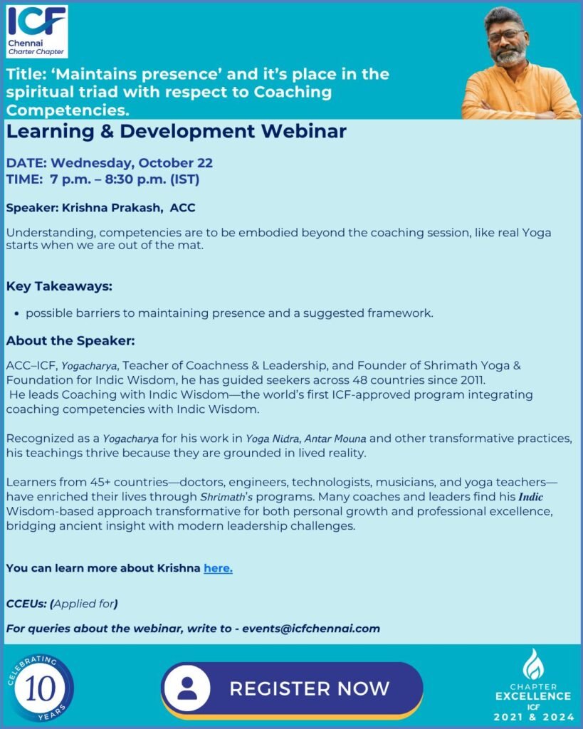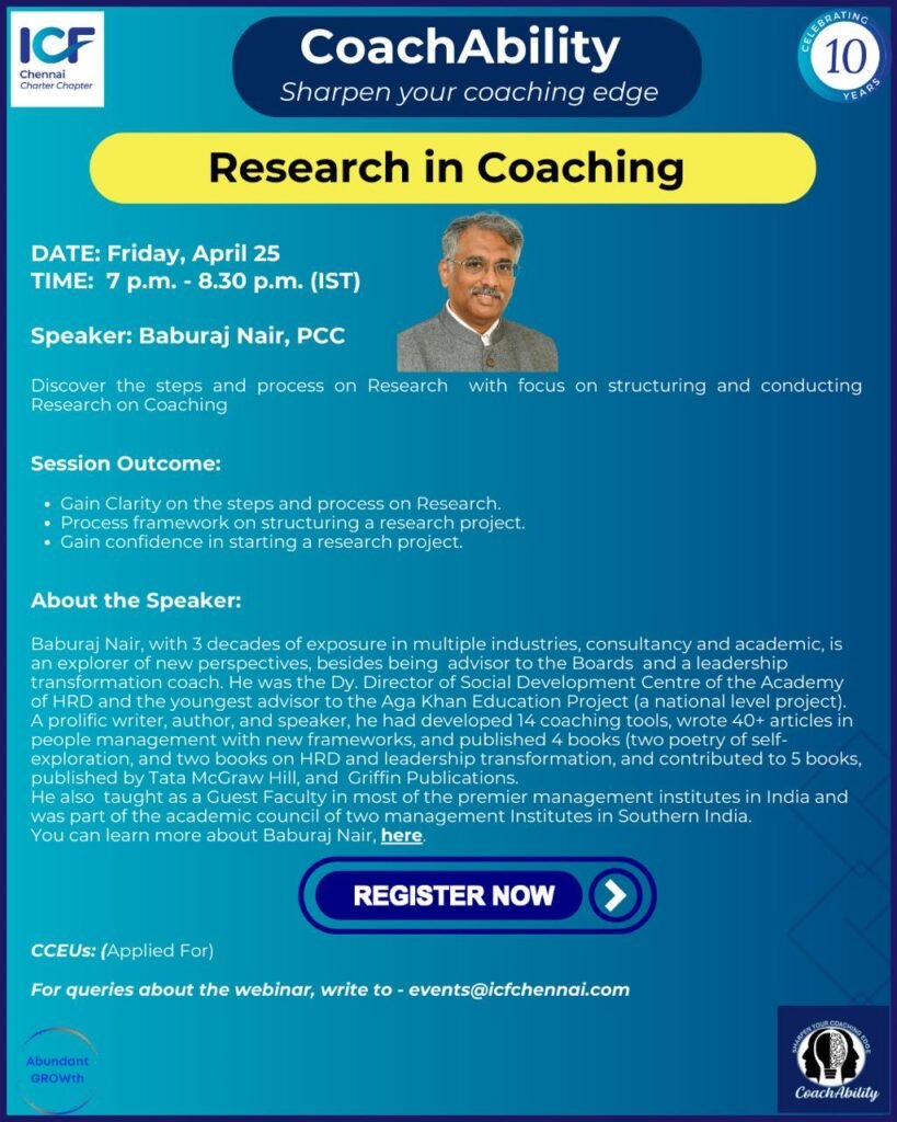 Be part of ICF Chennai and elevate your coaching journey with learning and leadership opportunities.